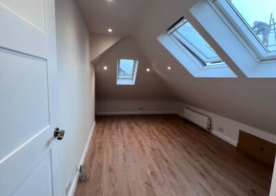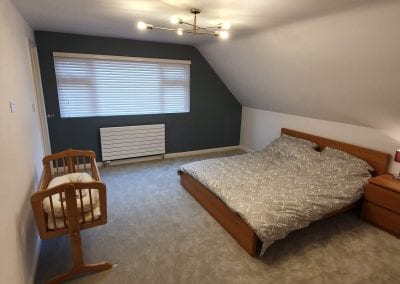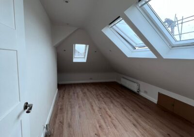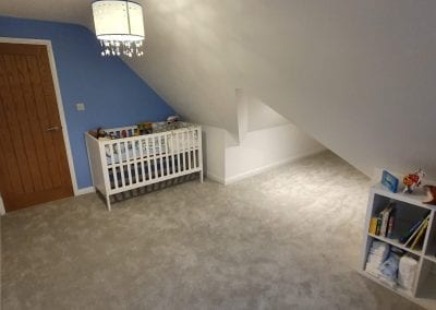 As one of our smaller projects for 2021, we completed a hip to gable loft conversion, creating two new loft bedrooms and one en-suite bathroom. This project also involved boiler replacement, new electrics, flooring, internal doors and decorating.