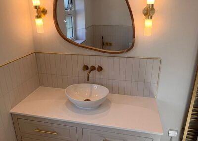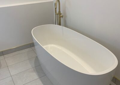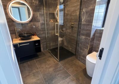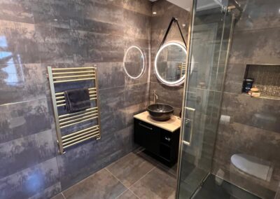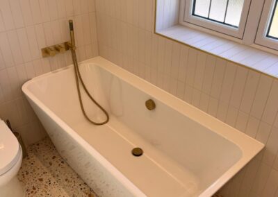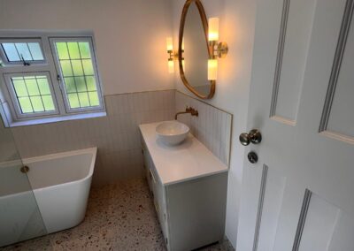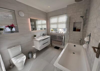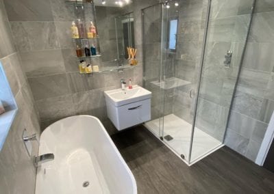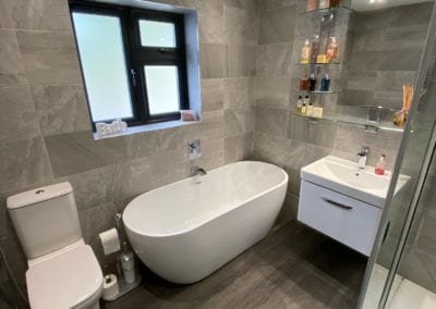 One of our 2022 standalone bathroom projects saw us take an old bathroom and separate WC and transform it into a beautifully designed family bathroom. With a walk-in shower, semi-freestanding bath, luxury tiling and matching tap ware, this bathroom is both fully-functional for the entire family and uber stylish.