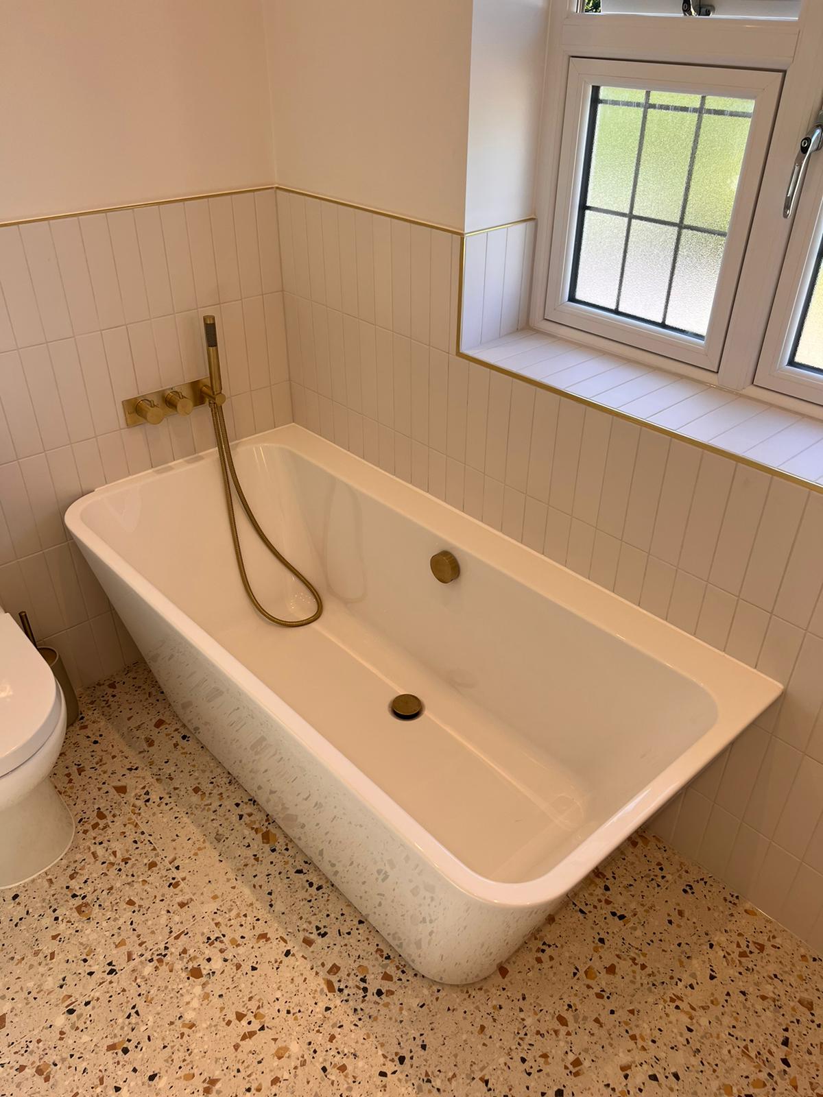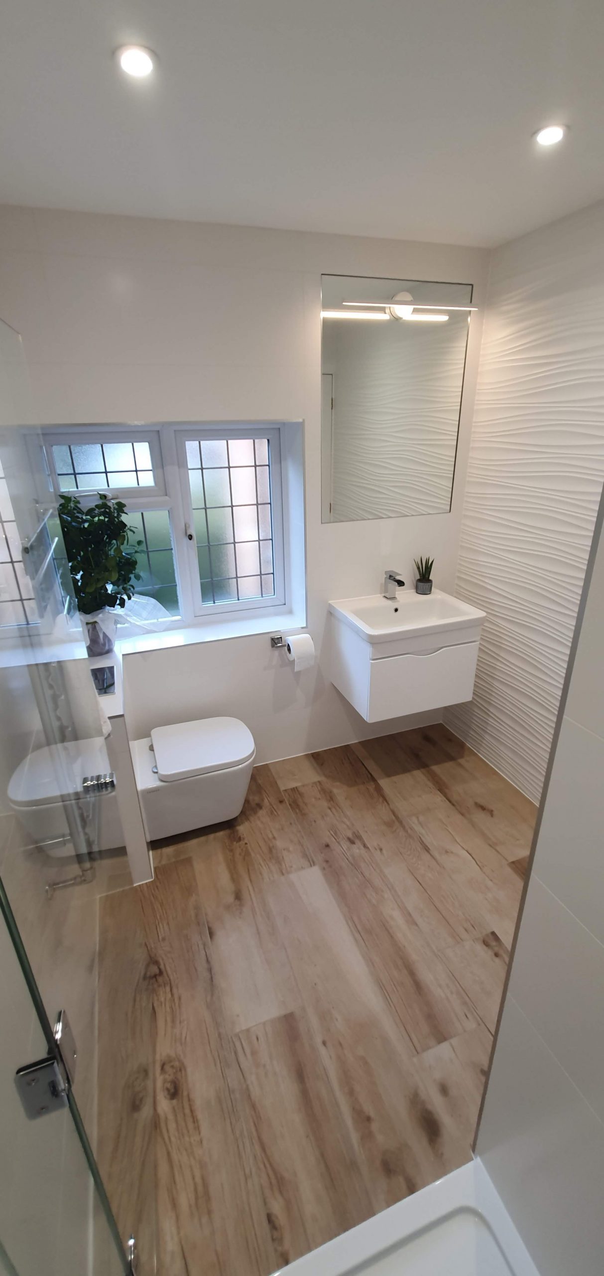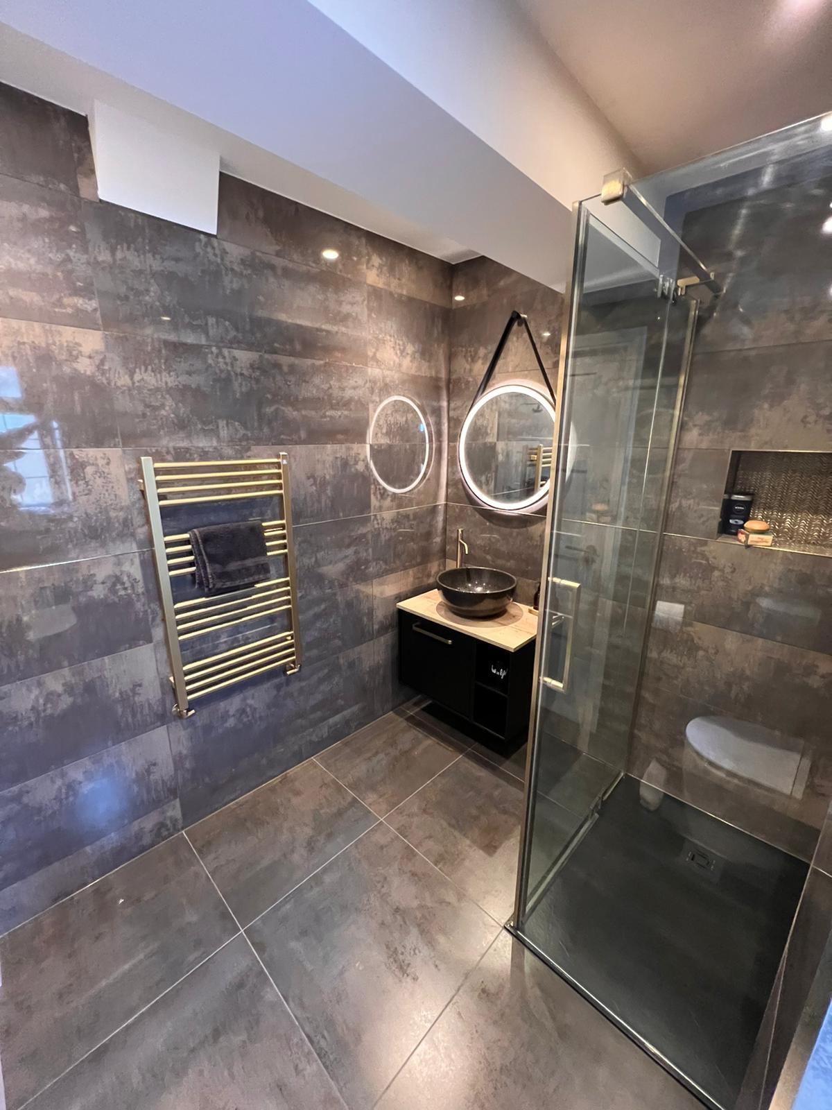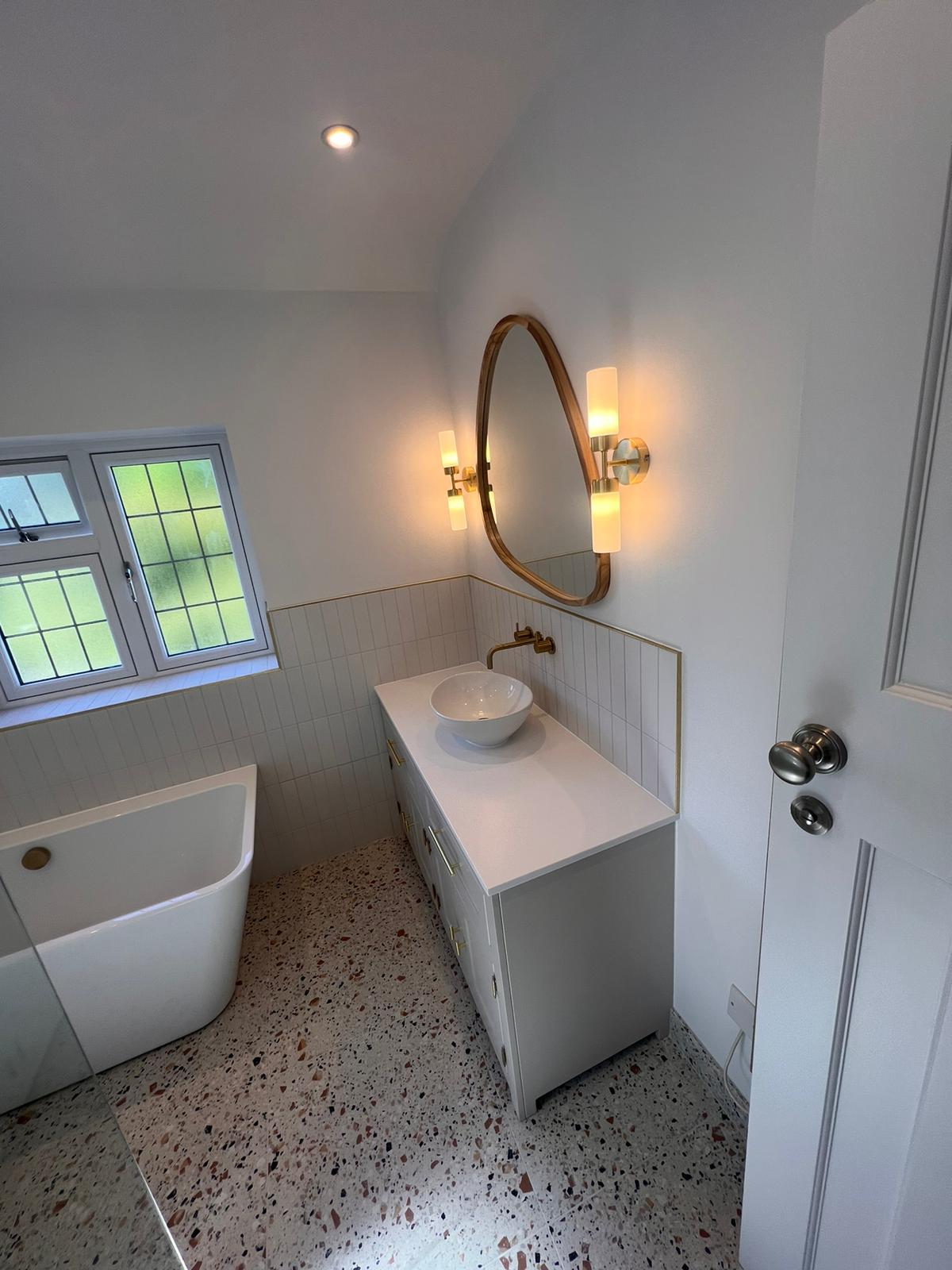 One of our 2022 standalone bathroom projects saw us take an old bathroom and separate WC and transform it into a beautifully designed family bathroom. With a walk-in shower, semi-freestanding bath, luxury tiling and matching tap ware, this bathroom is both fully-functional for the entire family and uber stylish.