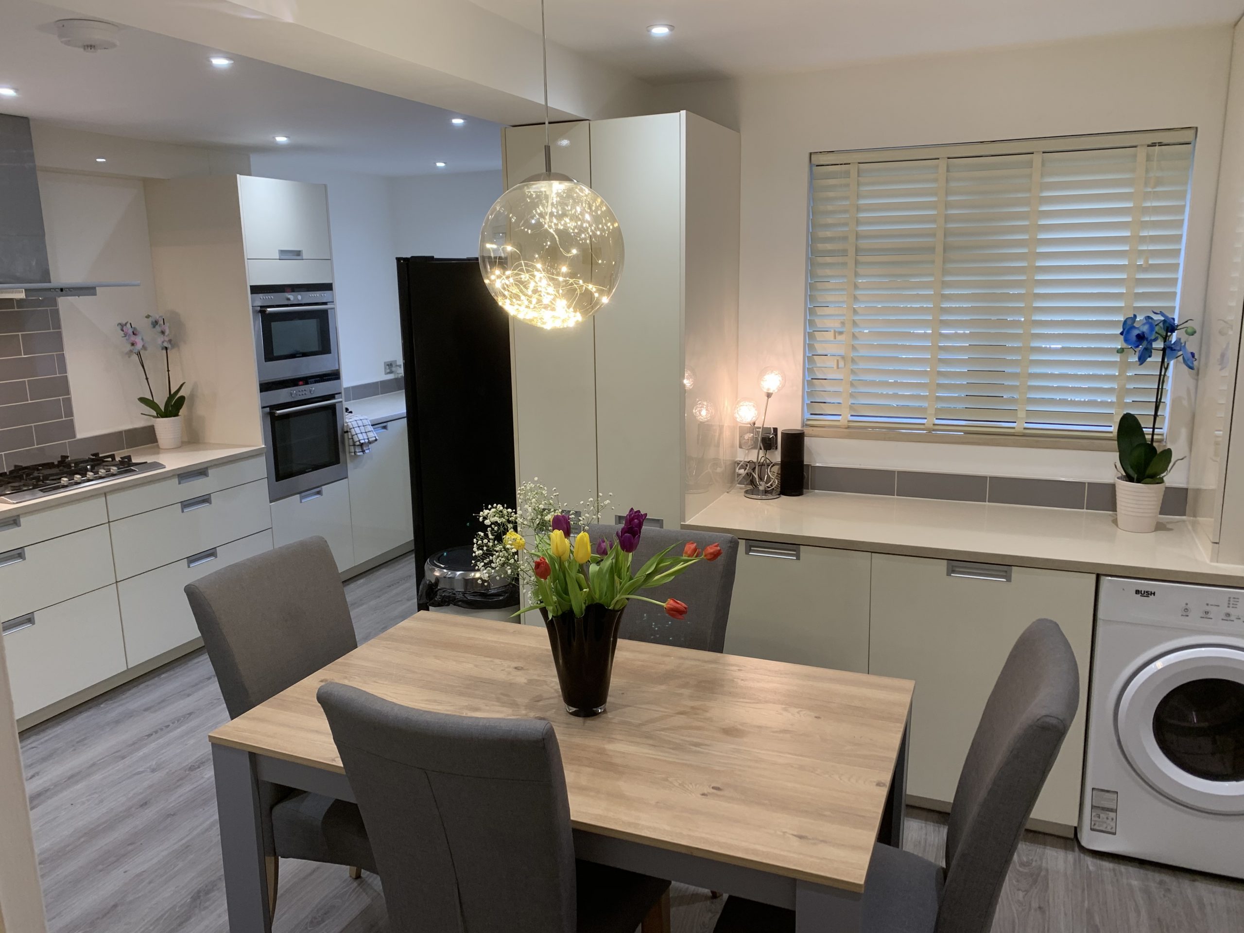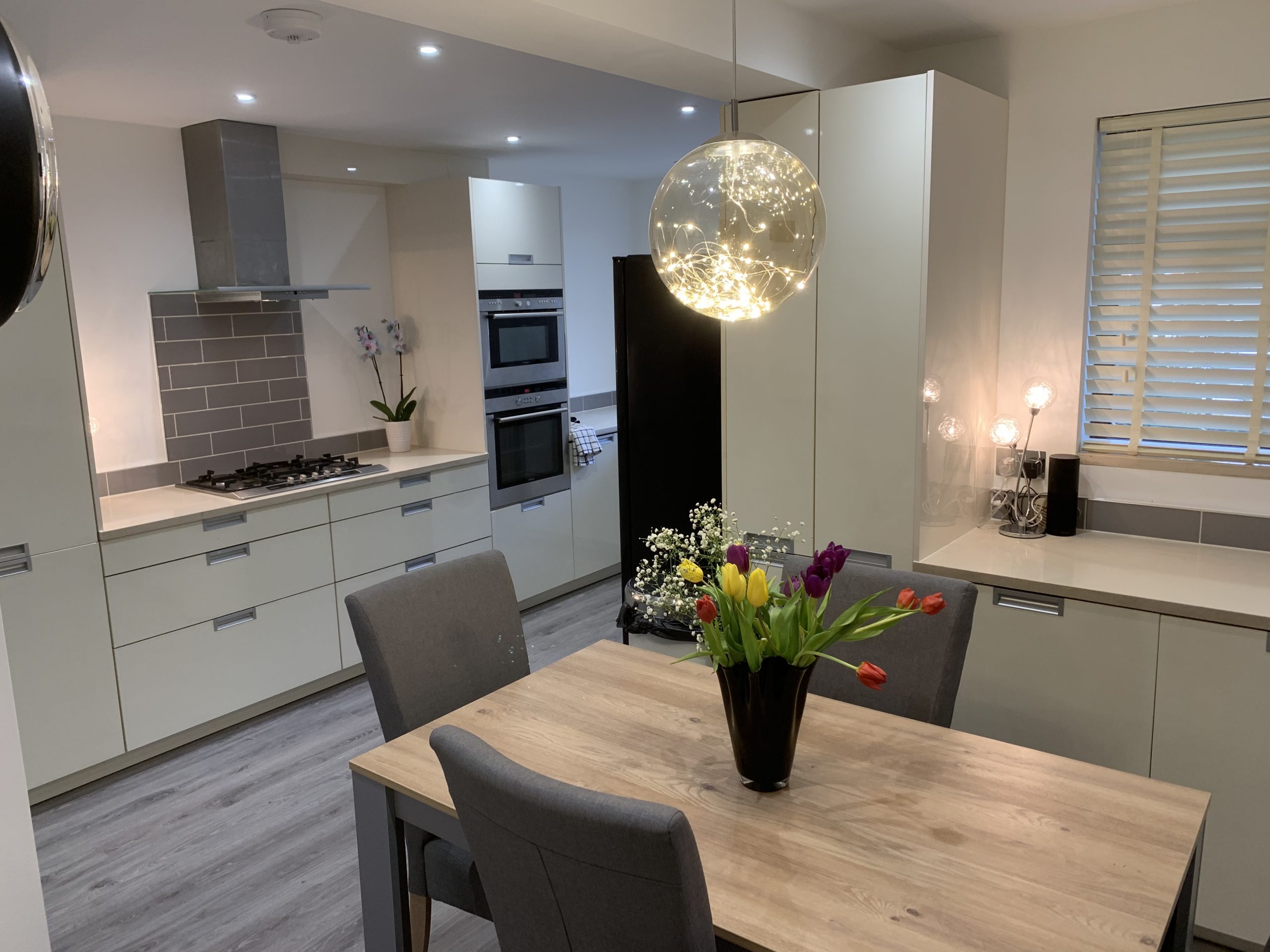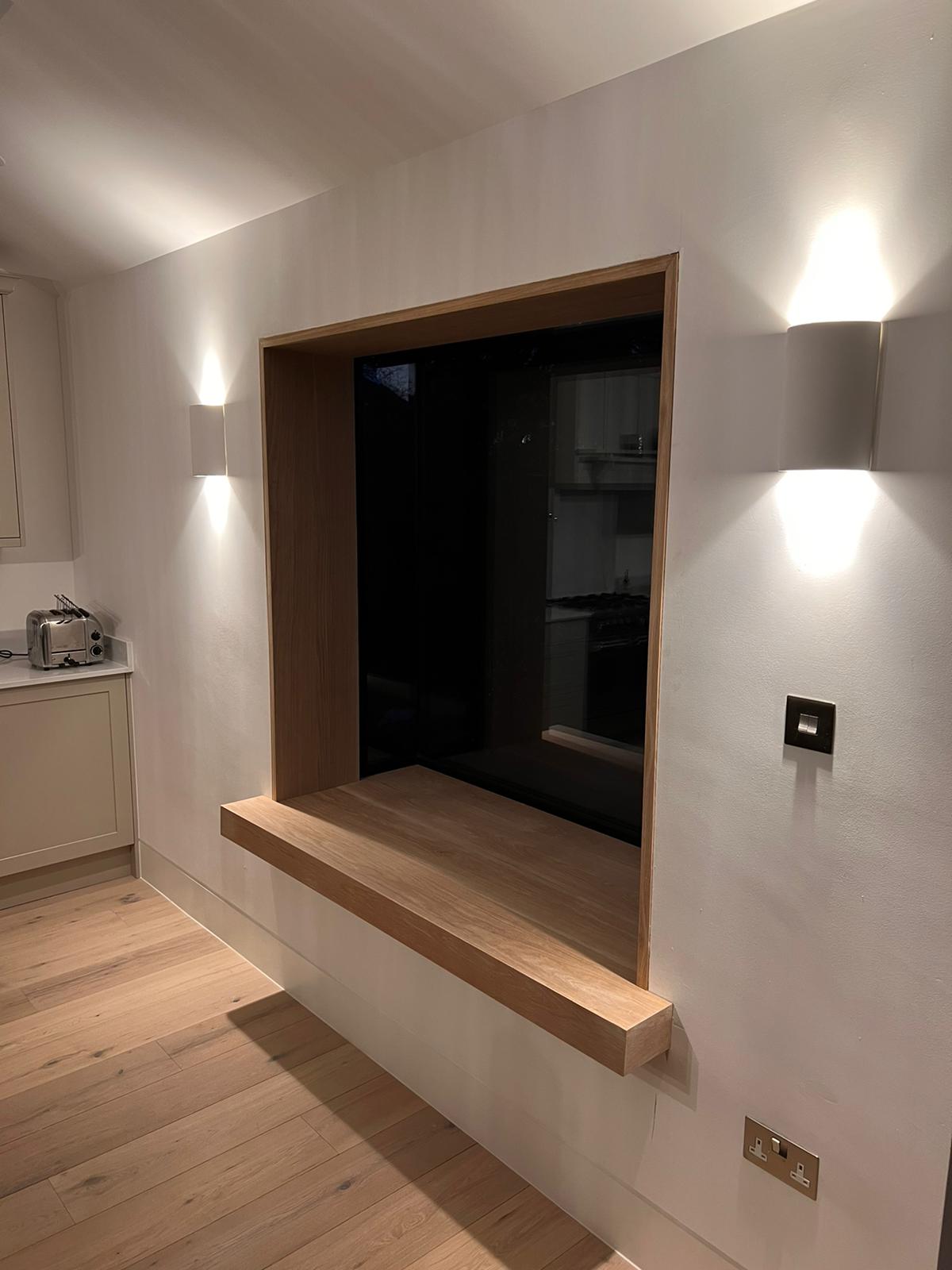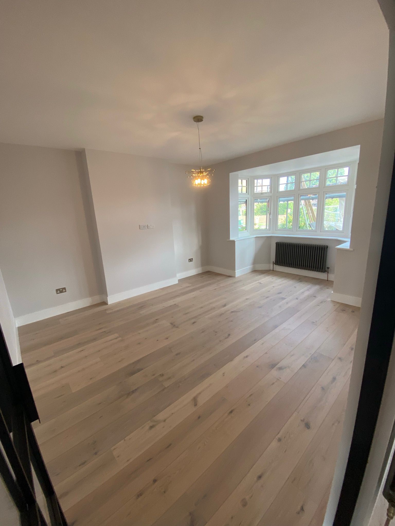 This was a full internal refurb project with the aim of creating the perfect family home for our clients. Finished to a high specification with an eye for design, we completed a full width ground floor wrap around extension, creating a new large open plan kitchen, dining and living space with a beautiful bespoke oriel window overlooking the garden. In addition, we completed a full electric re-wire to the property, fit new flooring and doors throughout, added underfloor heating, reconfigured the master bedroom to create a walk-in wardrobe and en suite, renovated the family bathroom and redecorated throughout.