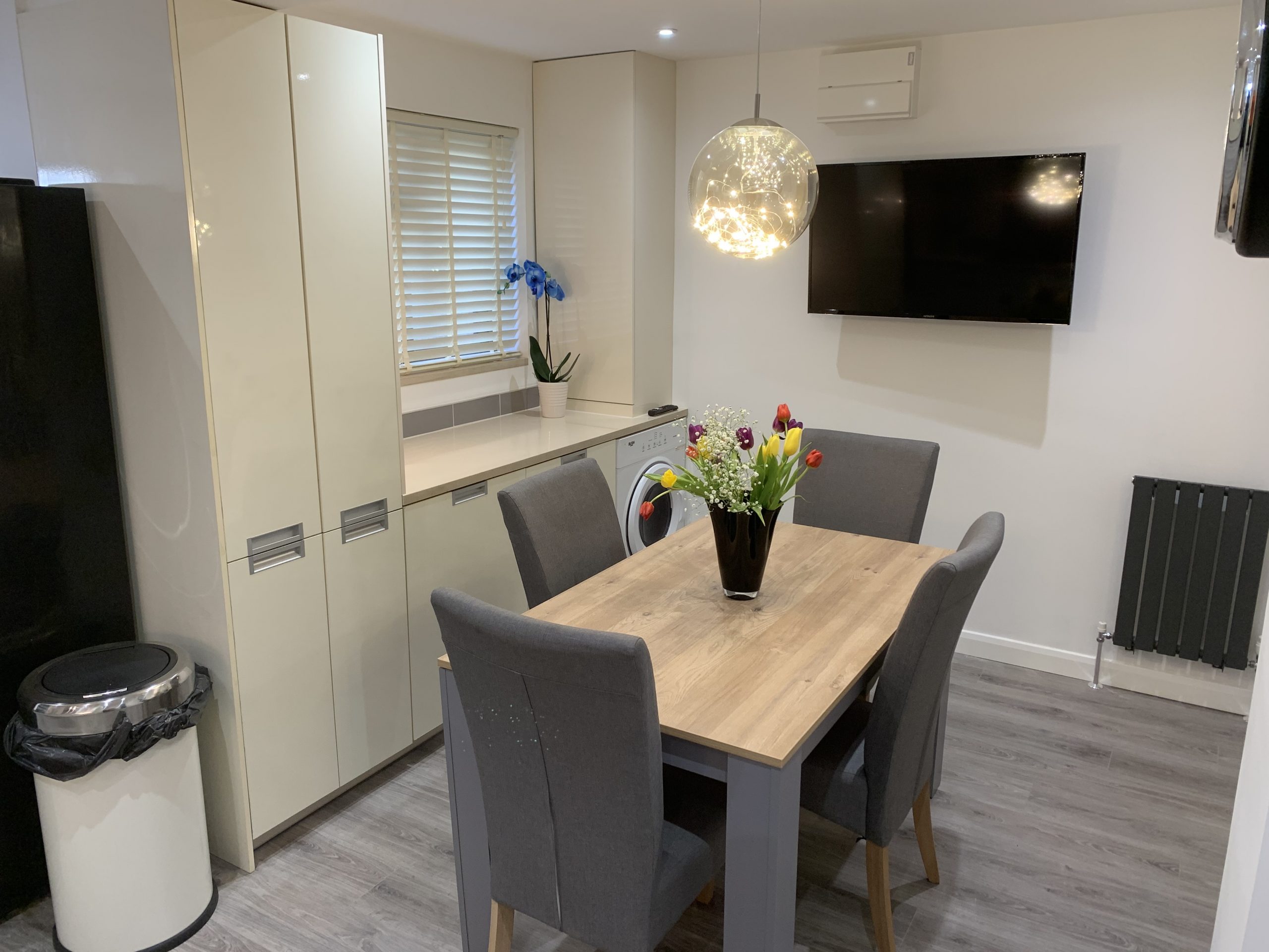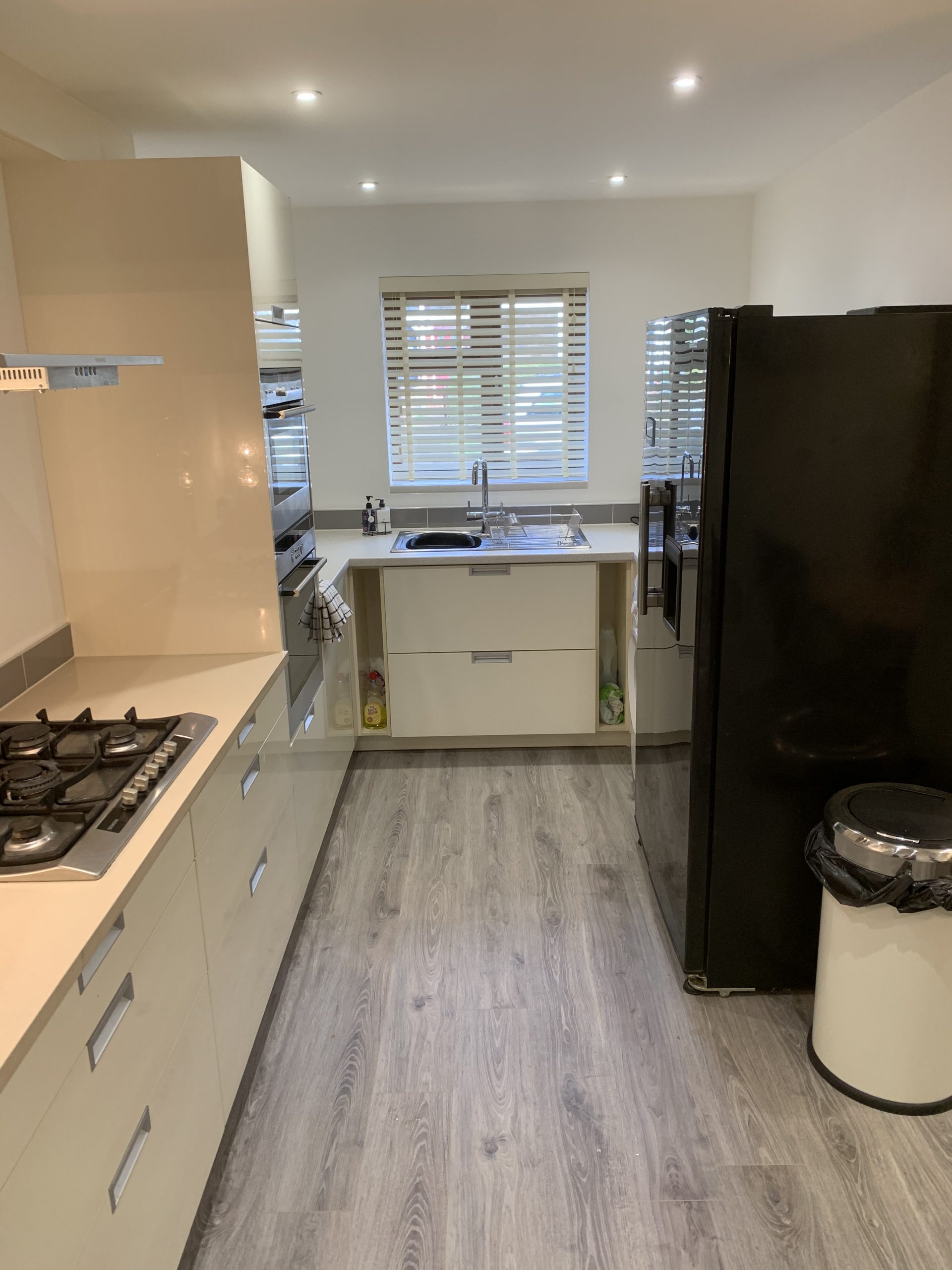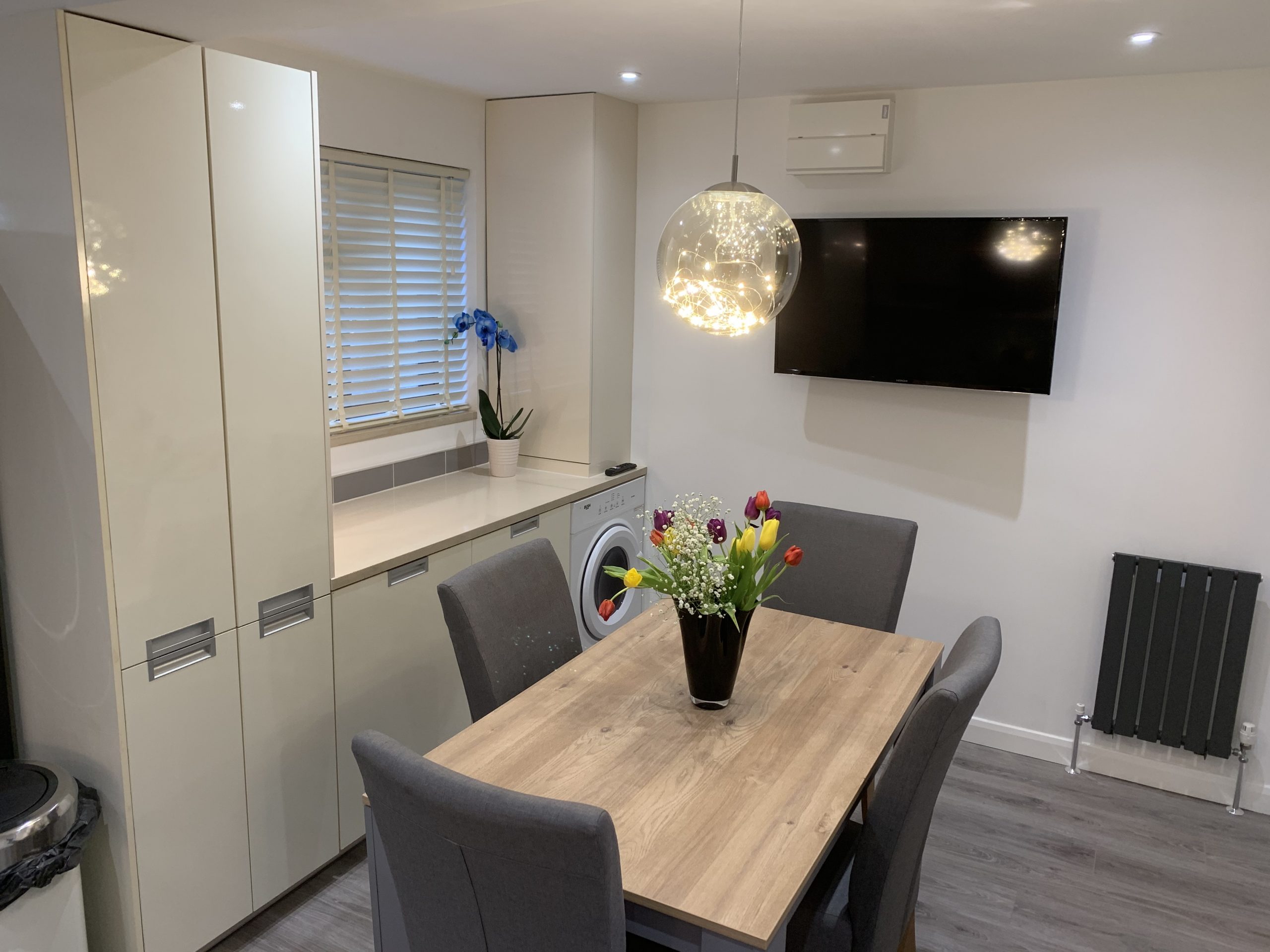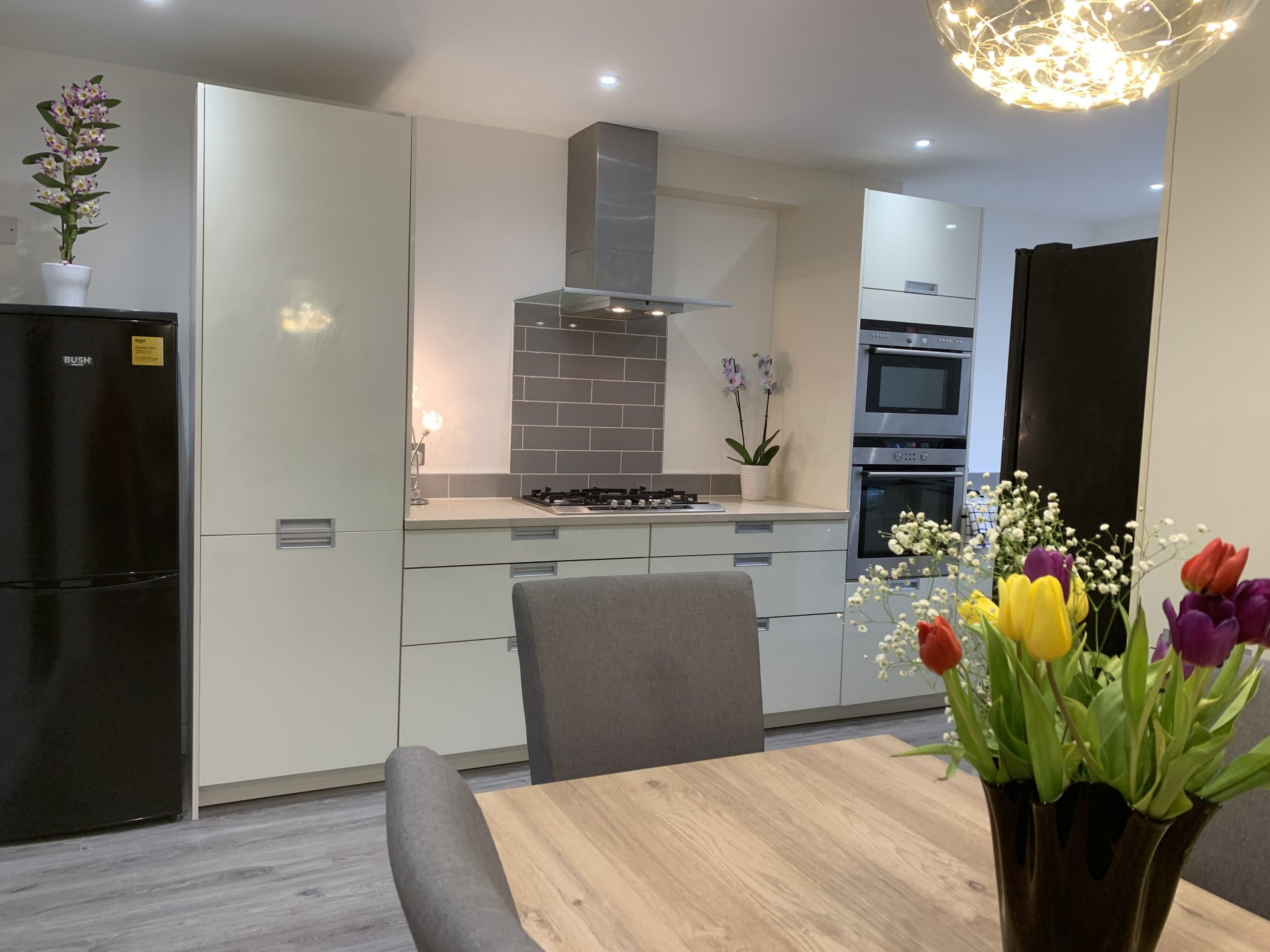 This was a full internal refurb project with the aim of creating the perfect family home for our clients. Finished to a high specification with an eye for design, we completed a full width ground floor wrap around extension, creating a new large open plan kitchen, dining and living space with a beautiful bespoke oriel window overlooking the garden. In addition, we completed a full electric re-wire to the property, fit new flooring and doors throughout, added underfloor heating, reconfigured the master bedroom to create a walk-in wardrobe and en suite, renovated the family bathroom and redecorated throughout.