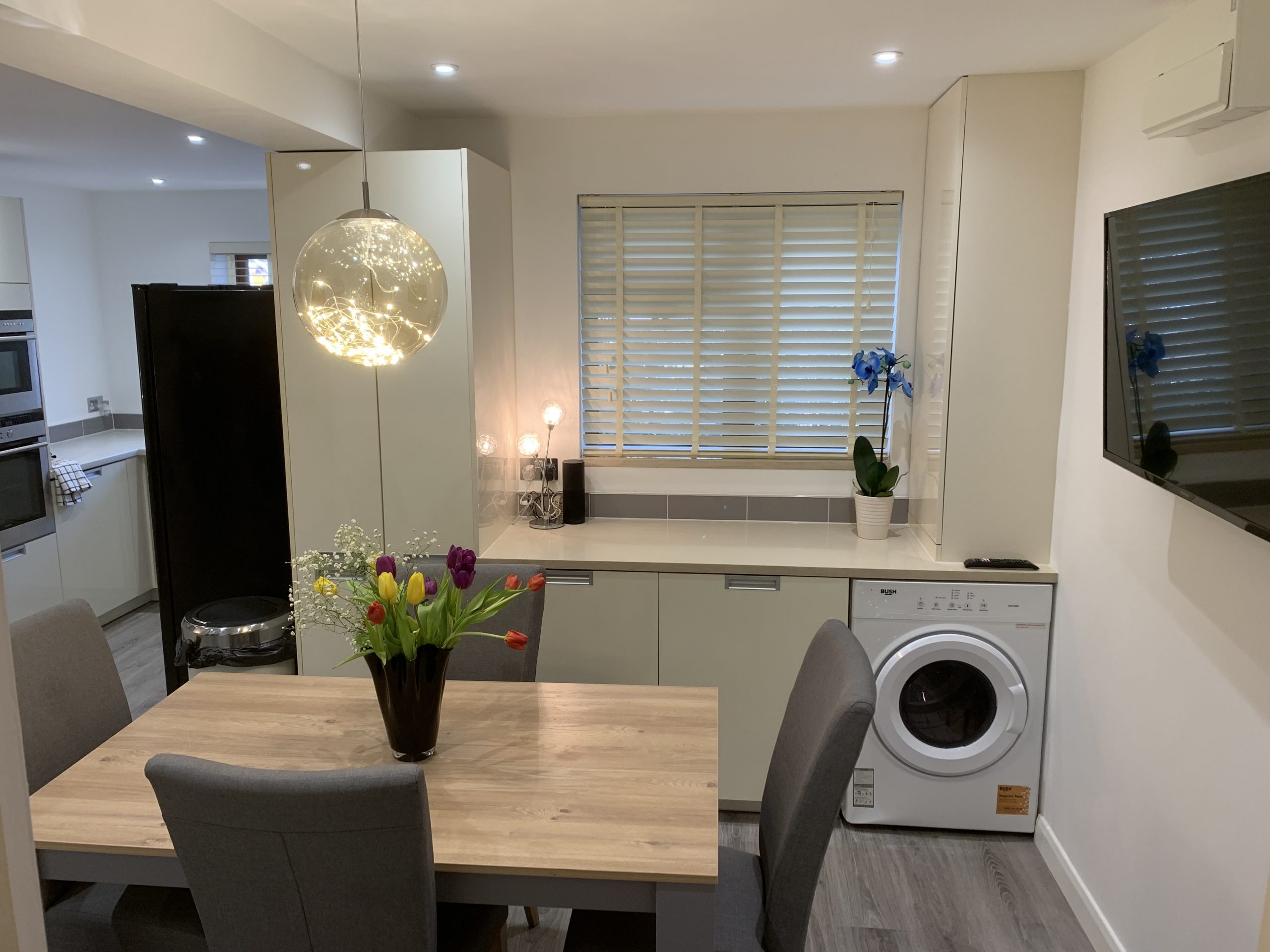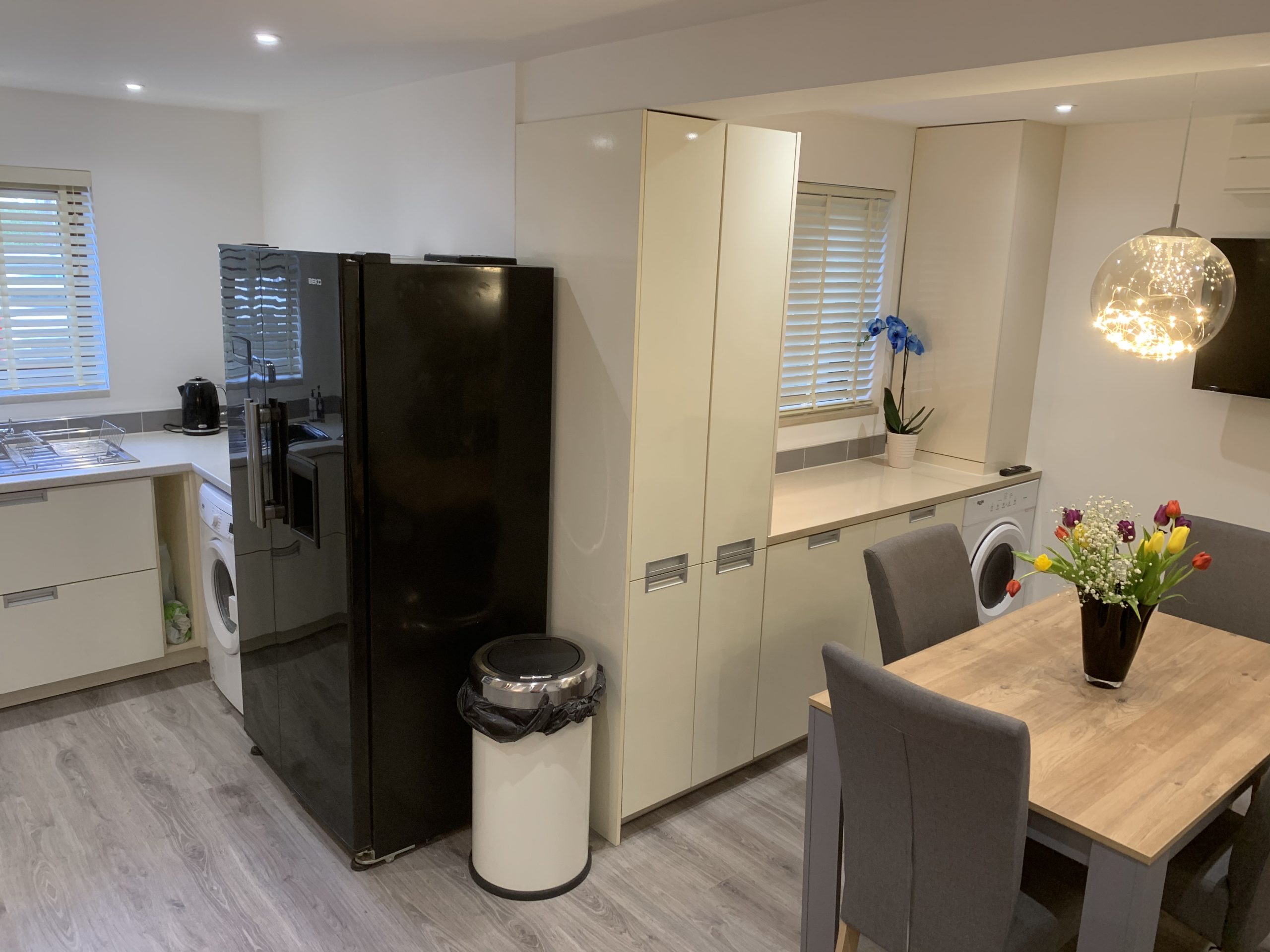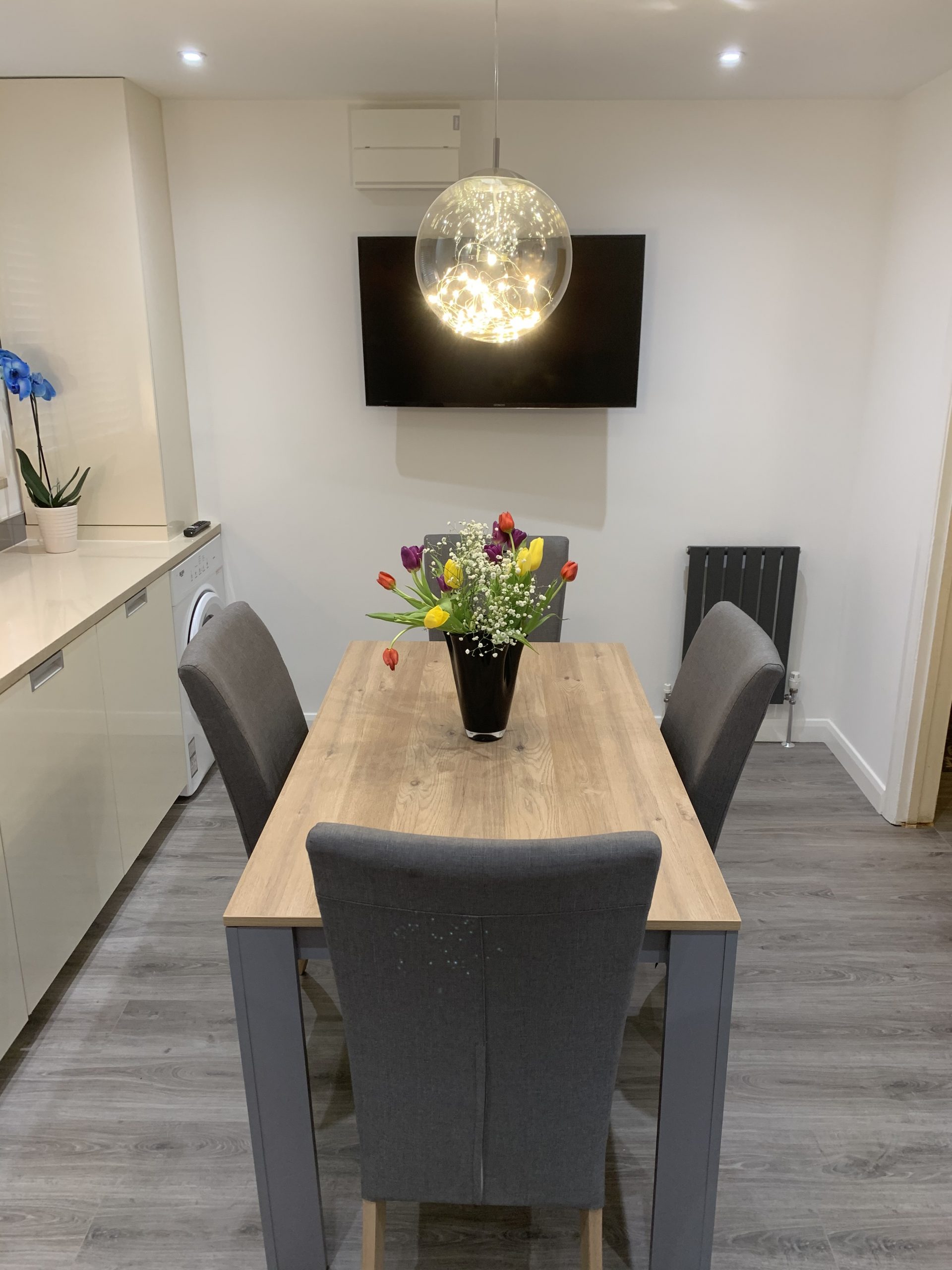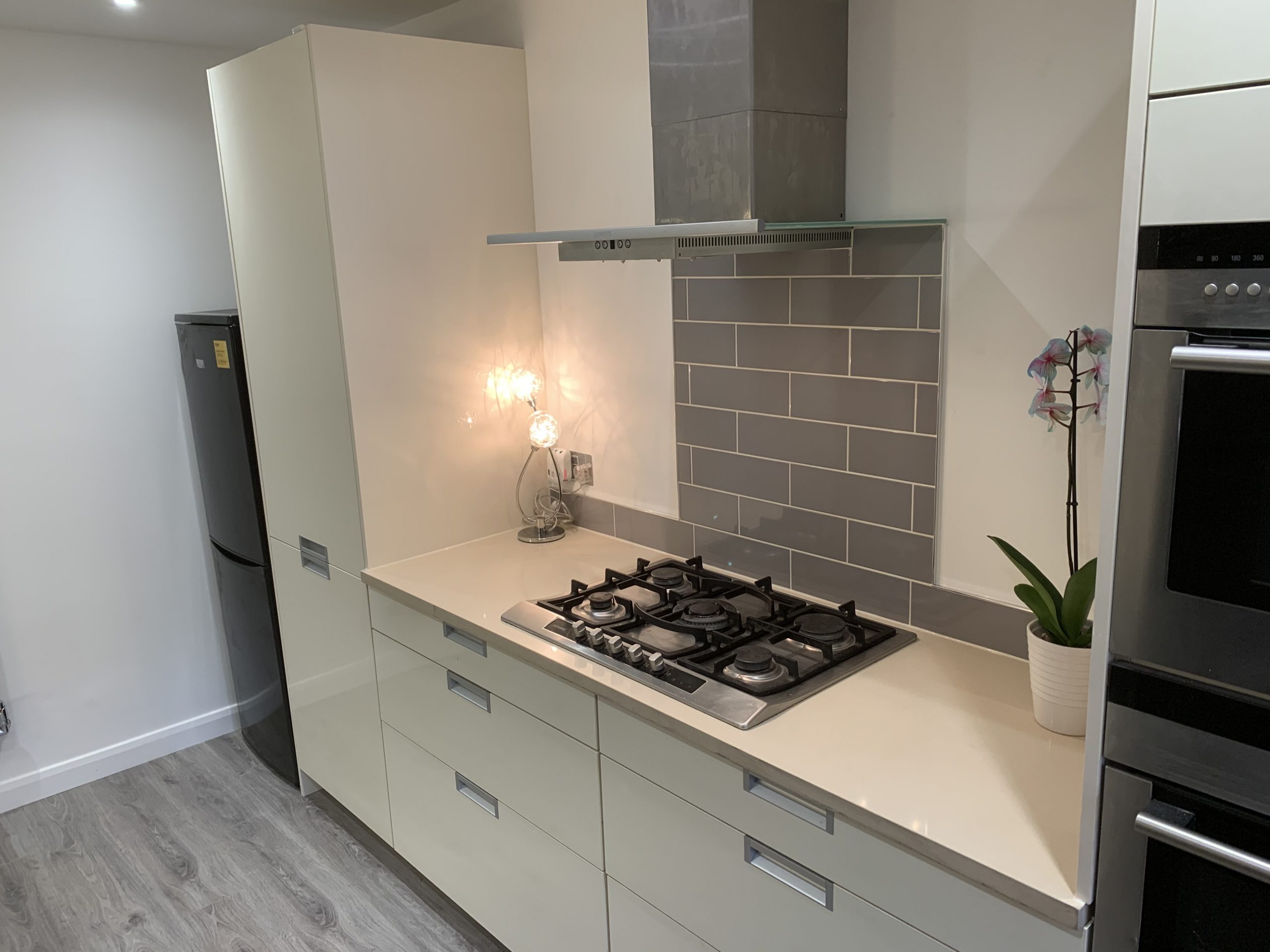This was a full internal refurb project with the aim of creating the perfect family home for our clients. Finished to a high specification with an eye for design, we completed a full width ground floor wrap around extension, creating a new large open plan kitchen, dining and living space with a beautiful bespoke oriel window overlooking the garden. In addition, we completed a full electric re-wire to the property, fit new flooring and doors throughout, added underfloor heating, reconfigured the master bedroom to create a walk-in wardrobe and en suite, renovated the family bathroom and redecorated throughout.